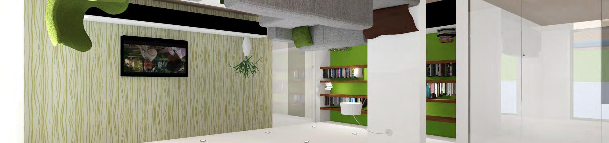 stojací lampa Rendl light designová plastová židle výmalba zelená bodové světlo vestavěné vestavěná skříňová sestava