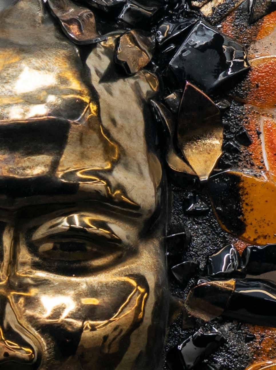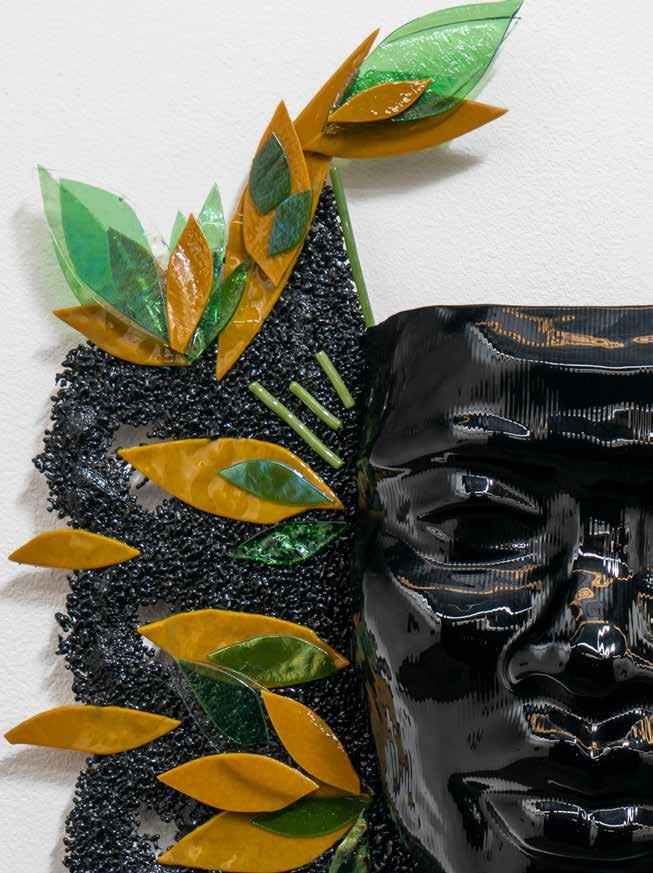 in the act of looking. Through these varying levels of perception, a duplicity is revealed as we shift through and contend with the different faces we wear. Concerning the history of African masks, Bright connects the physical with the spiritual where glass becomes a medium for the ancestral powers that animate all things.