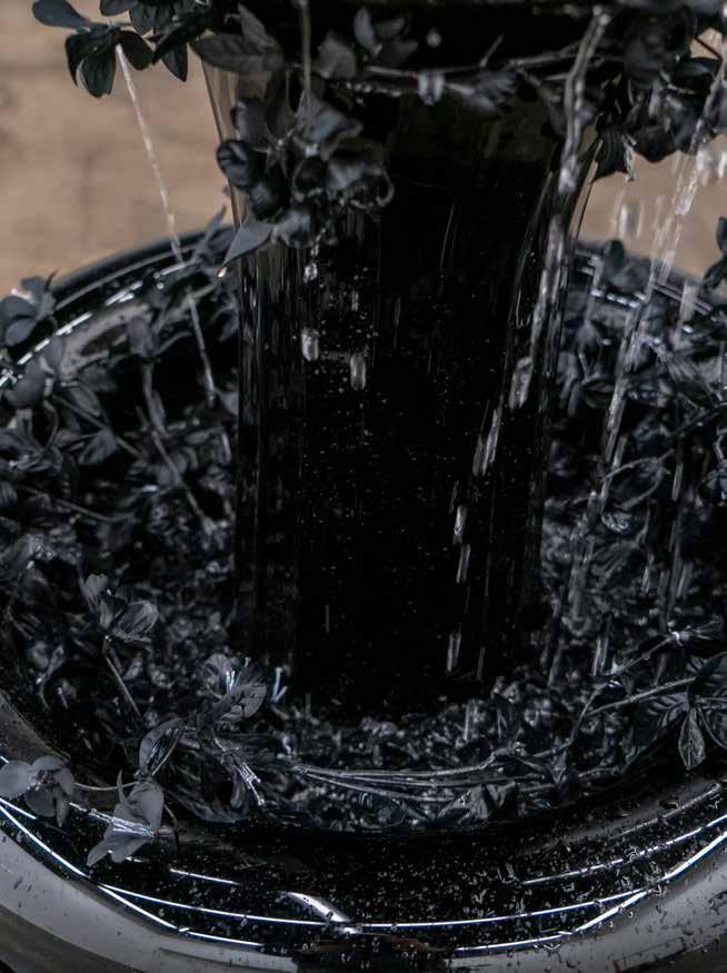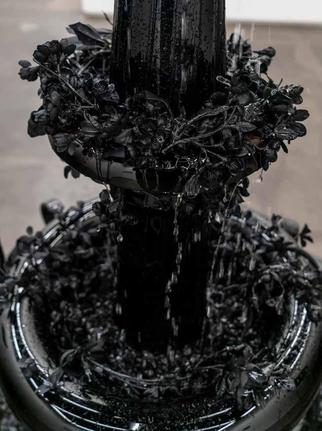 The exhibition presents a series of glass sculptures which honors Bright’s heritage and familial home in Nigeria, Rockhaven, a safe haven where generations of family members have gathered to celebrate, mourn, and share collective experiences. The exhibition’s main feature, a glass water fountain, is a heraldic symbol for legacy and an ode to sanctuary. Water, symbolic in Nigerian culture for bringing life, reclaims the environment with its rejuvenation properties. As it flows endlessly through each level of the black glass, viewers experience a collective renewal and connection to the depths of our own histories. Through the artist’s personal lens, Bright considers the aspirational act of naming a home and the significance of upholding space within the unpredictable terrains of life.
