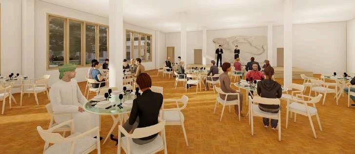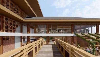THE MASSES ON THE SITE ARE SEPARATE SO IT NEEDS SOMETHING THAT CAN BIND THE BUILDINGS INTO ONE, THESE BRIDGES CONNECTTHEBUILDINGSTOTHECENTRAL MASSWHICHISTHERESTAURANT,SOTHIS RESTAURANTISAPUBLICPLACETHATISA GATHERING PLACE FOR ANYONE AND DOESNOTLOOKATFACES