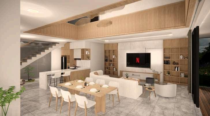 This house comes from 2 concepts, namely "Japandi" and "clean". The essence taken from the "JapaneseScandinavian" concept is wood material and also its minimalism.Whilecleanformsabrightercolorandalsothe selection of wood materials that tend to be brighter on the facadeandinterior.
