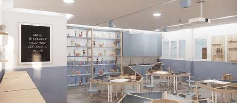After doing the facade design and changing the floor plan at the school. The school wants an additional Visual Art room and also a Library. The following is the Interior of the additional Visual Art room on the Rooftop. The table used in this room takes inspiration from the architectural studio table that can be raised and lowered.