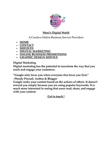 Moni’s Digital World is founded by a Professionals to provide a Best Digital Services to your Business.Get your Website to High Rank On Search Engines(GOOGLE,BING) & Get a Creative Posters for Promote your Business at Online & Offline!