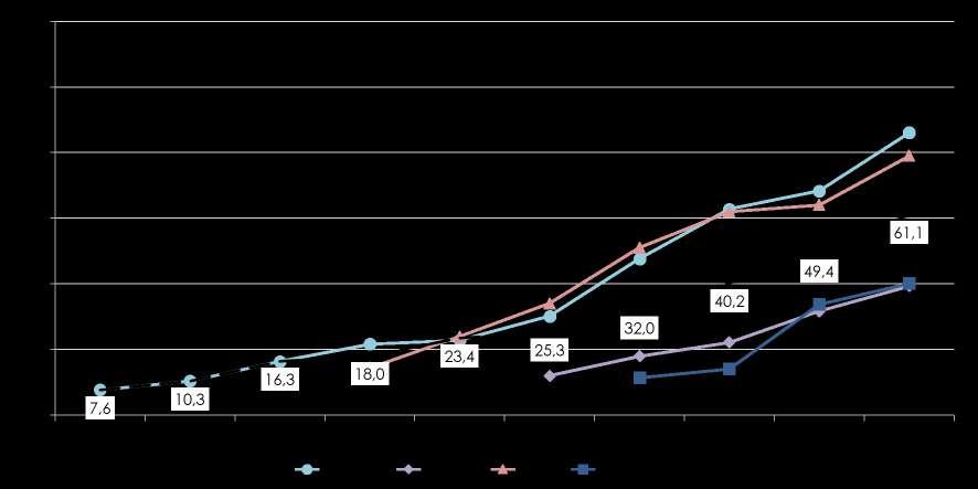 FONTE PWC 162,9 207,7 266,6 384,3 337,2 Totale RICAVI