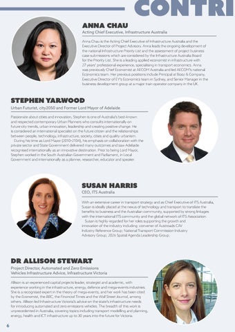 Acting Chief Executive, Infrastructure Australia Anna Chau is the Acting Chief Executive of Infrastructure Australia and the Executive Director of Project Advisory. Anna leads the ongoing development of the national Infrastructure Priority List and the assessment of project business case submissions which are considered by the Infrastructure Australia Board for the Priority List. She is a leading applied economist in infrastructure with 27 years’ professional experience, specialising in transport economics. Anna was previously Chief Economist at AECOM Australia and led AECOM’s national Economics team. Her previous positions include Principal at Booz & Company, Executive Director of EY’s Economics team in Sydney, and Senior Manager in the business development group at a major train operator company in the UK.