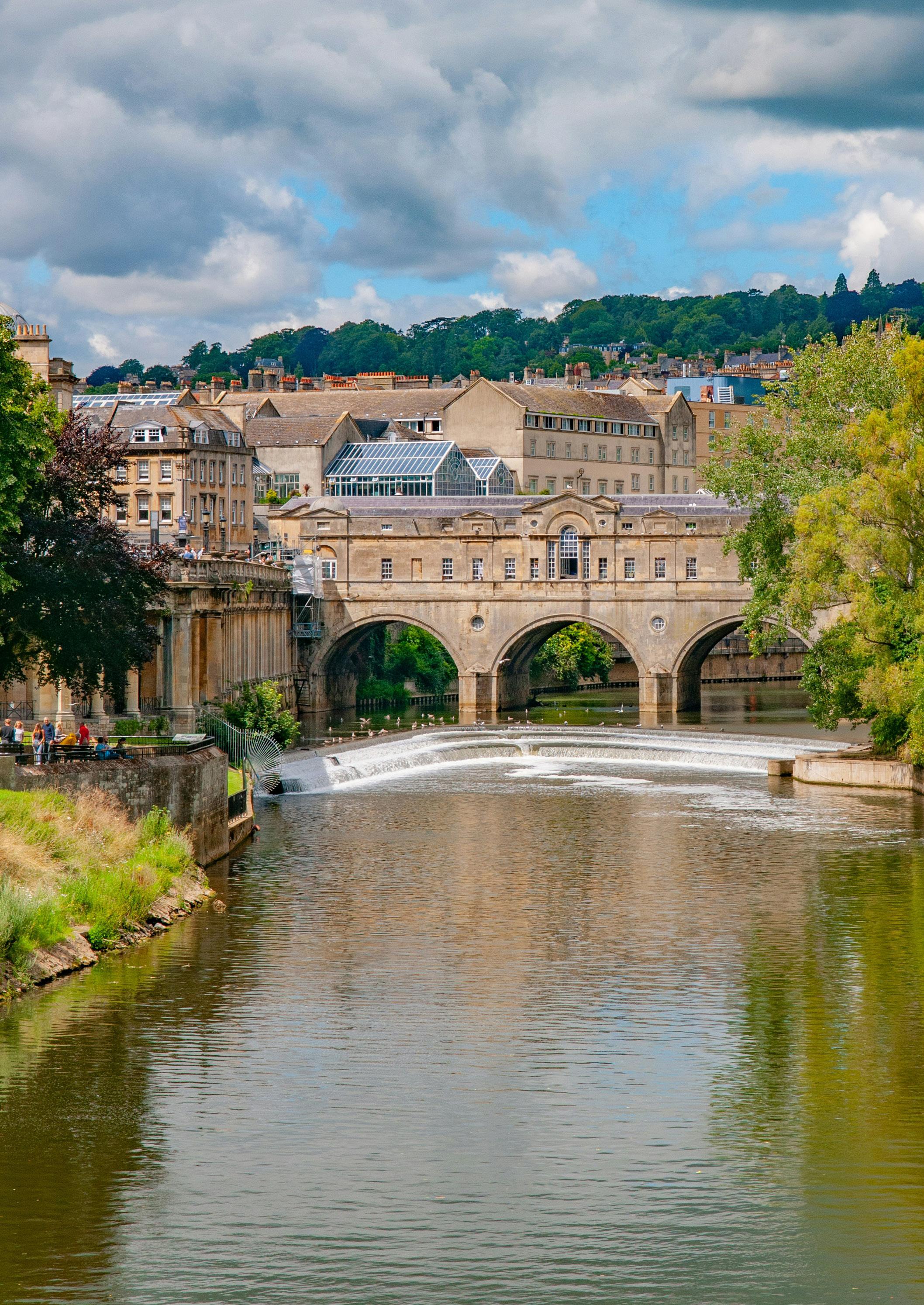 An iconic bridge with shops along both sides, offering a beautiful view over the River Avon.