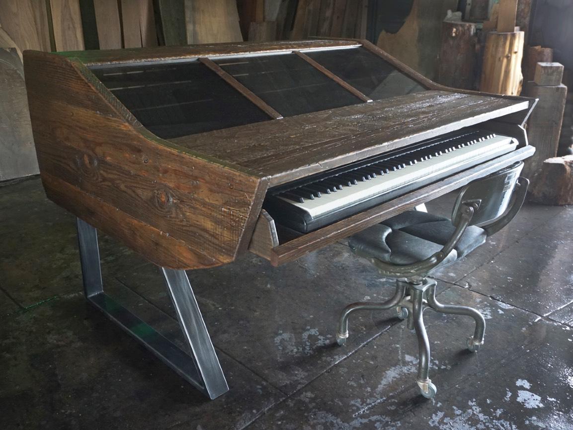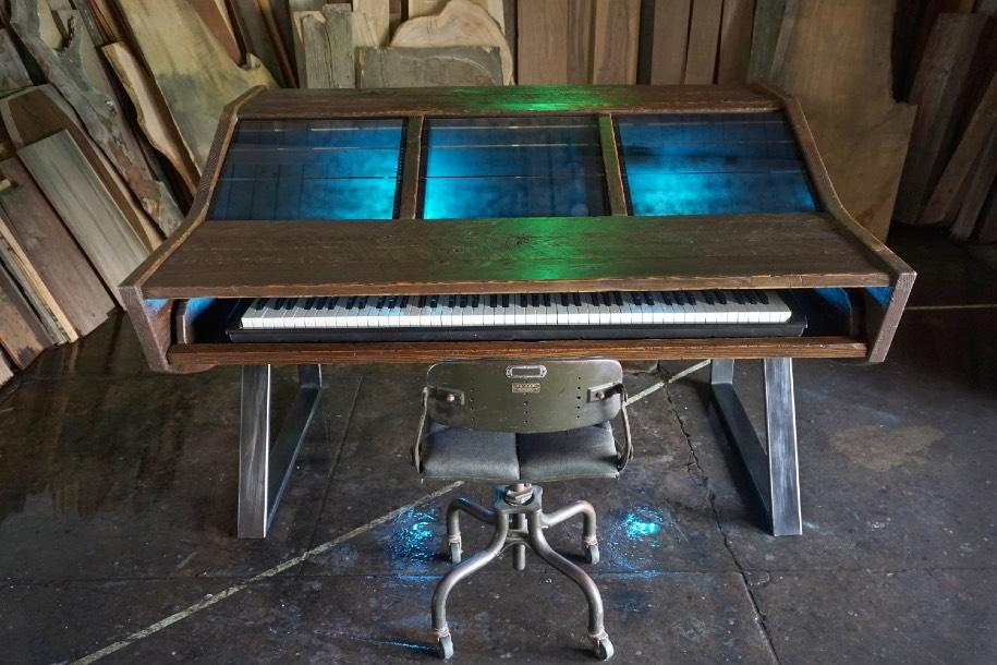 The VX88 is modeled after a 1980’s Porsche 928 and 1970’s Mustang Mach One. The lines are designed to make this desk feel more like a integrated instrument than a piece of furniture. It’s main functional feature is allowing room for a full size 88 key controller within the smallest footprint we offer, making it NYC compatible.