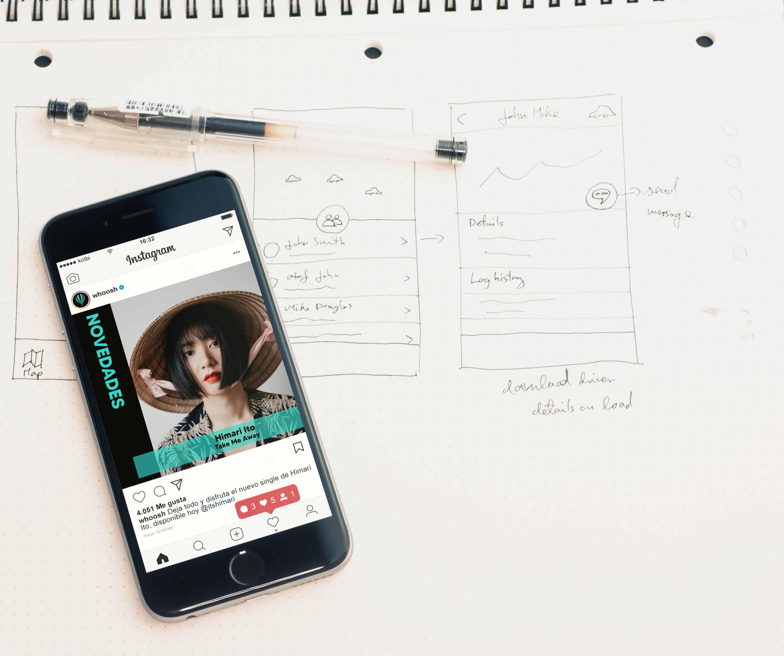 Whoosh es una plataforma de streaming de música donde el usuario puede recomendar e intercambiar canciones con amigos que se encuentran en la plataforma.