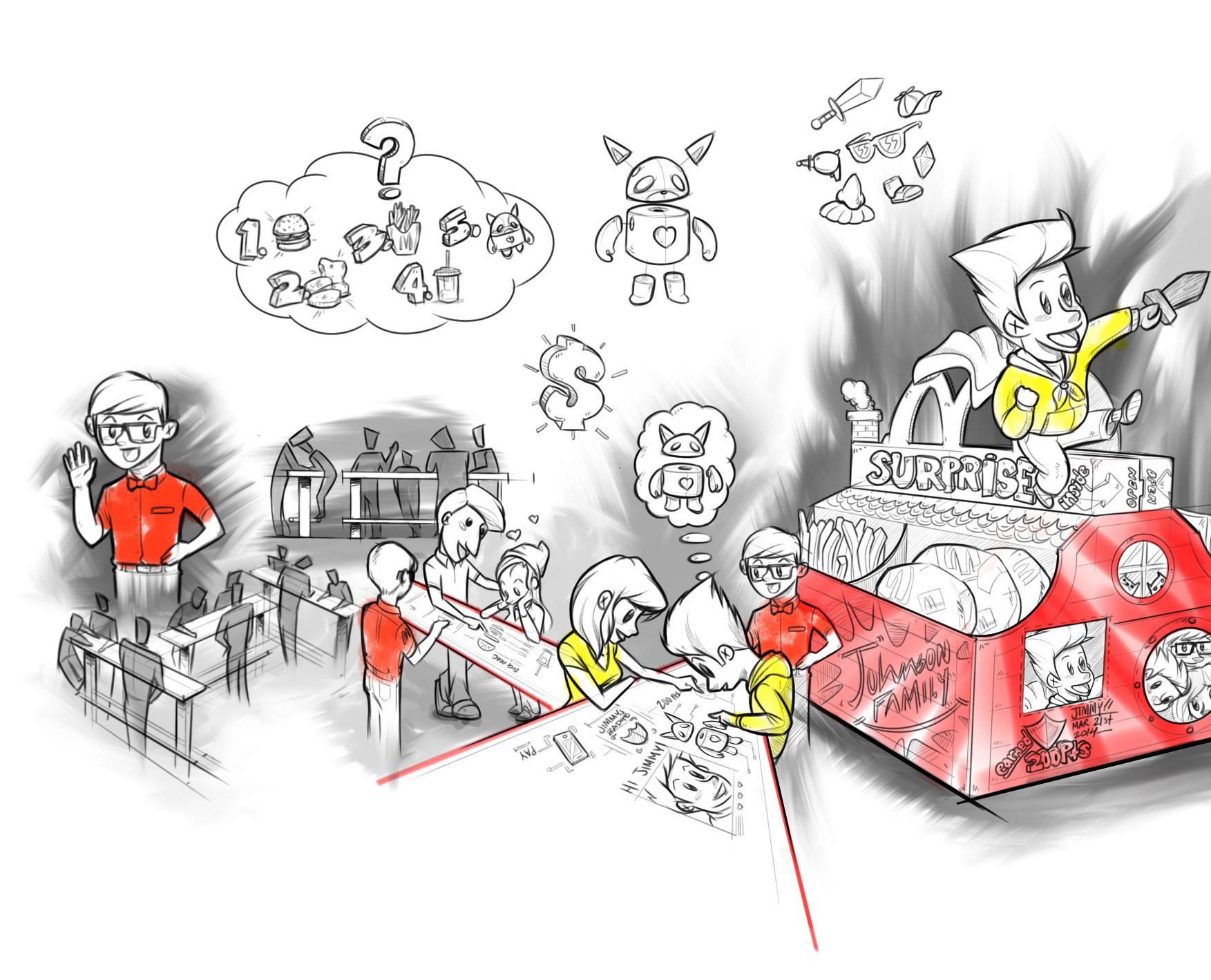A fter Kidrobot, Ad and Michael were hired by McDonald’s to reimagine the Happy Meal experience, which was facing a 10 year decline in revenue. Together, we developed innovative solutions to align with a new generation of parents and their kids, resulting in a rapid increase in sales and the intro to new technologies. Our first concept was developed into the 2015 Superbowl Commercial, “Pay With Lovin’,” which garnered widespread acclaim and millions in sales.