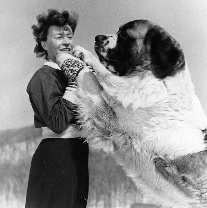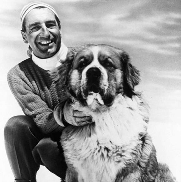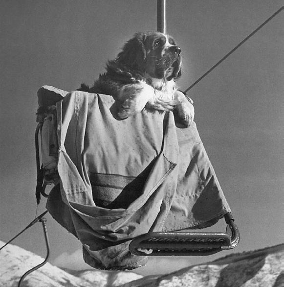 Bingo was one of the most loved dogs in Aspen and could be seen most anytime on the sidewalk in front of the Hotel Jerome or at the Ski School meeting place lazing patiently on the snow waiting for master, Fred Iselin, or mistress, Elli Iselin, to appear. Bingo appeared in movies and you have likely seen the photo of him riding up Chair One. (Excerpt from Aspen Times).