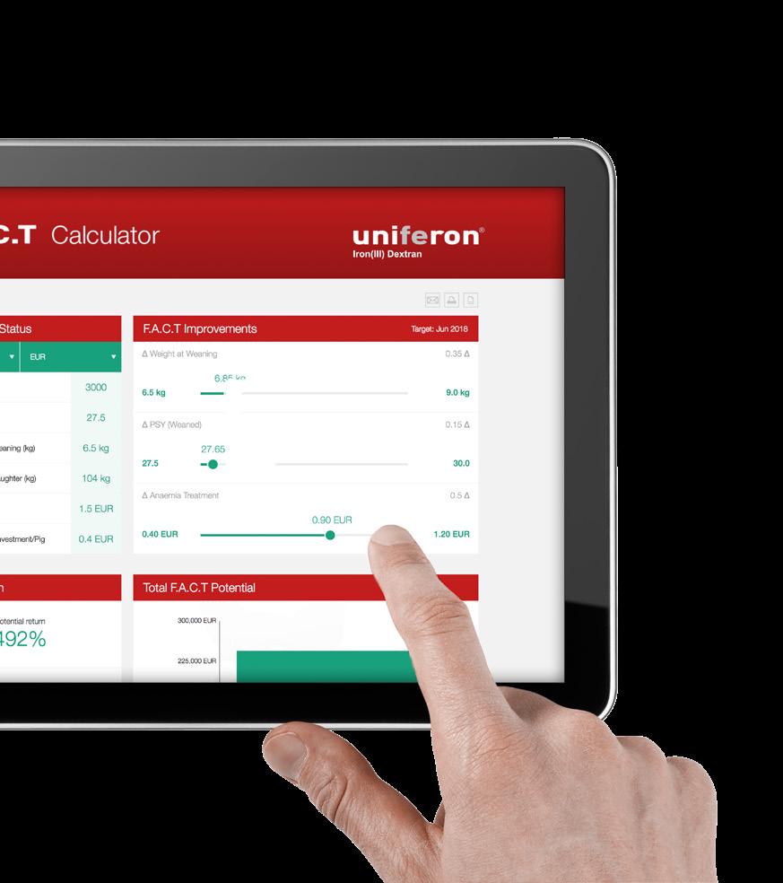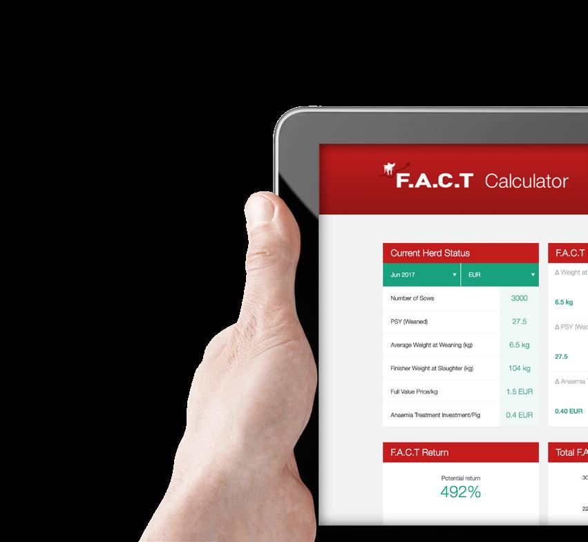 The F.A.C.T calculator simulates the iron requirement in order to avoid an “iron gap” and also calculate the potential profit of optimized iron treatment. The tool allows you to calculate a number of factors, including finisher weight, full value price and much more – and presents a realistic and convincing argument when talking with customers.