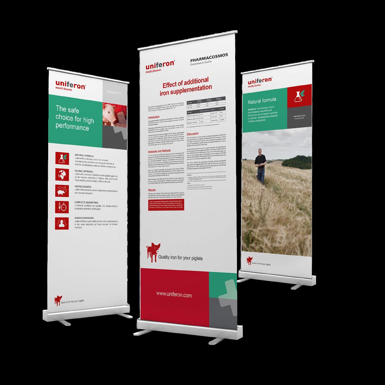 On the following pages, we highlight the many important tools, messages and material that will assist your work when selling Uniferon® and positioning it as the premium brand in the pigsty. You are introduced to the meaning of the Uniferon® name, the values of Pharmacosmos, the innovative services that surrounds the product, and much more.