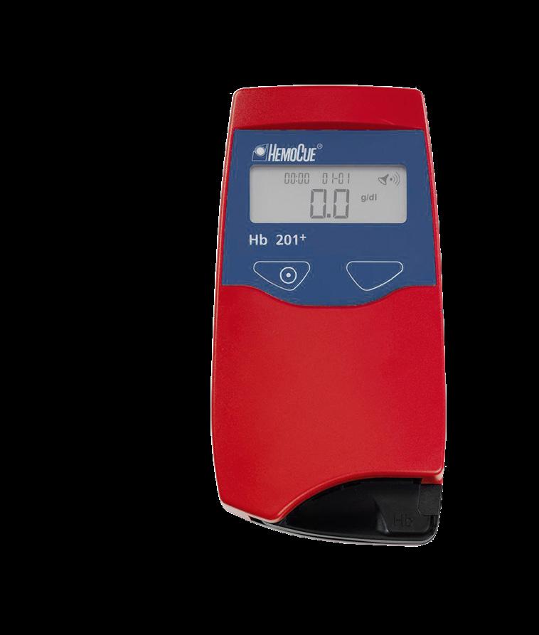 The handheld device HemoCue 201 + Hb photometer is a fast and reliable way to determine the prevalence of anaemia and iron deficiency within the herd.