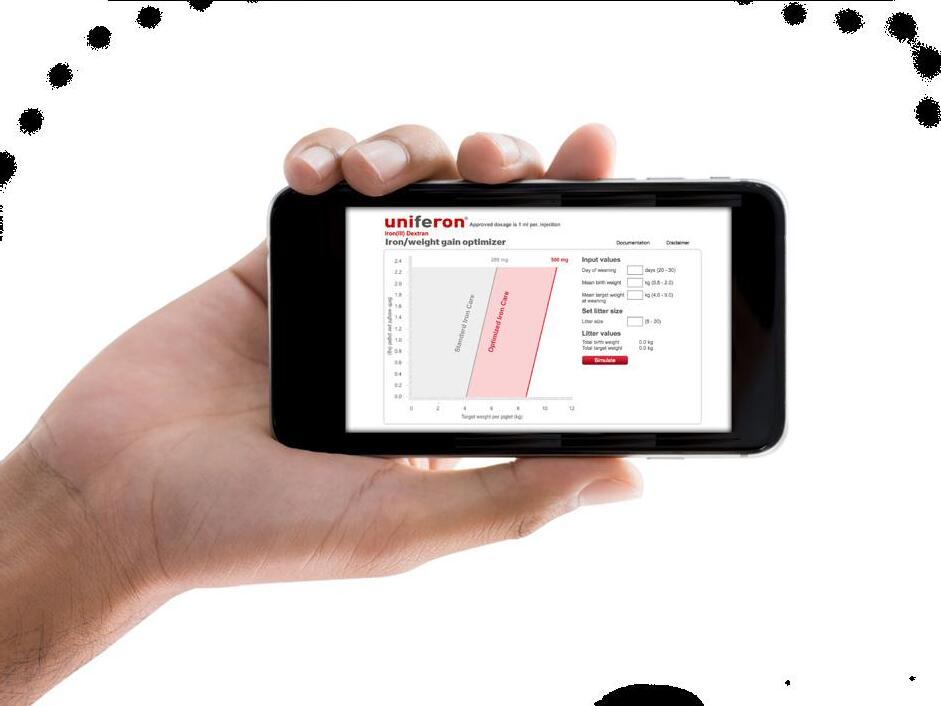 The clever online tool illustrates the iron needed in order to achieve the optimal weight gain targets at weaning. Simply type in day of weaning, mean birth weight, mean target weight at weaning and litter size, and the optimizer will calculate the data and display a result that may indicate a need for an optimized iron treatment.