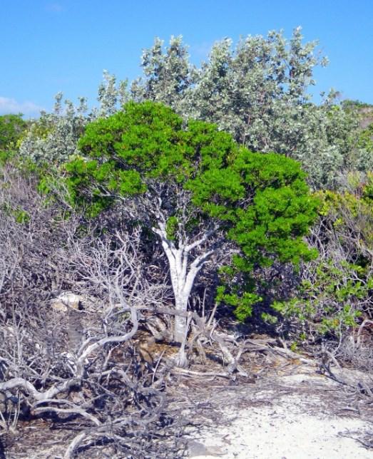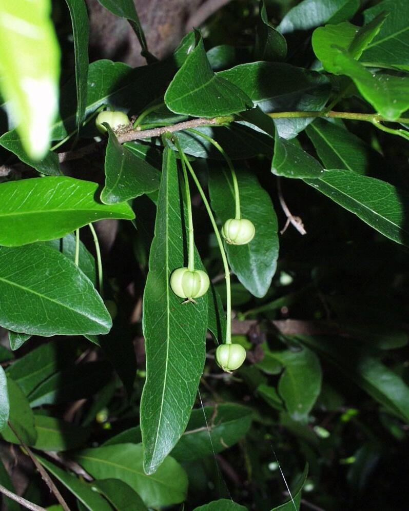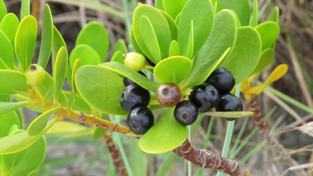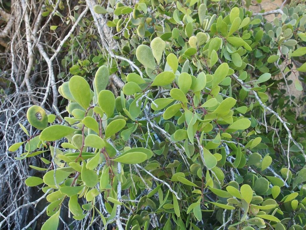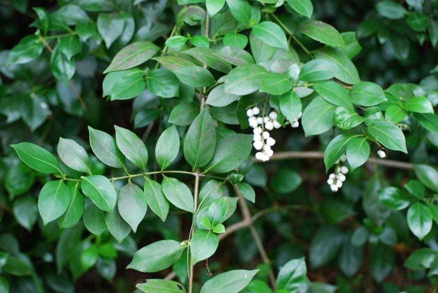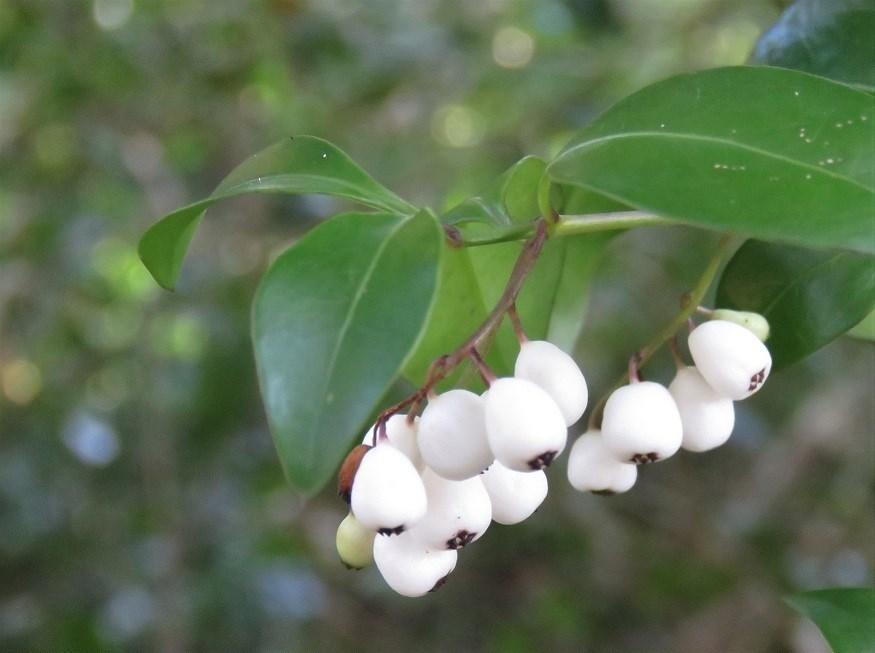 Three species of snowberry are found in the Florida Keys (C. alba, C. parvifolia and C. pinetorum). All grow as climbing vine-like shrub with dark green shiny leaves.