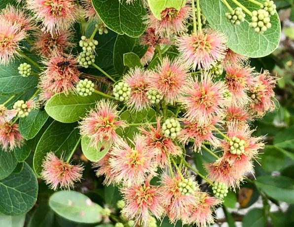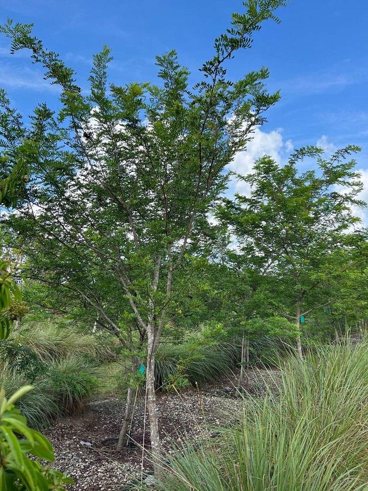 A tree to 35 feet in height adorned with soft light-green compound leaves. Exhibits striking light-pink to white flowers that bloom (AprilJune) in clusters. The tree is deciduous and will loose its leaves, but this just serves to show off the striking blooms. It is a host plant for the hammock skipper and the fulvous hairstreak butterfly. Fun Fact: The leaves, twigs, and bark contain toxins historically used by Native Americans to stupefy fish for easier capture, a practice now prohibited by state law. The wood has found application in shipbuilding, while other parts are utilized for various medicinal purposes.