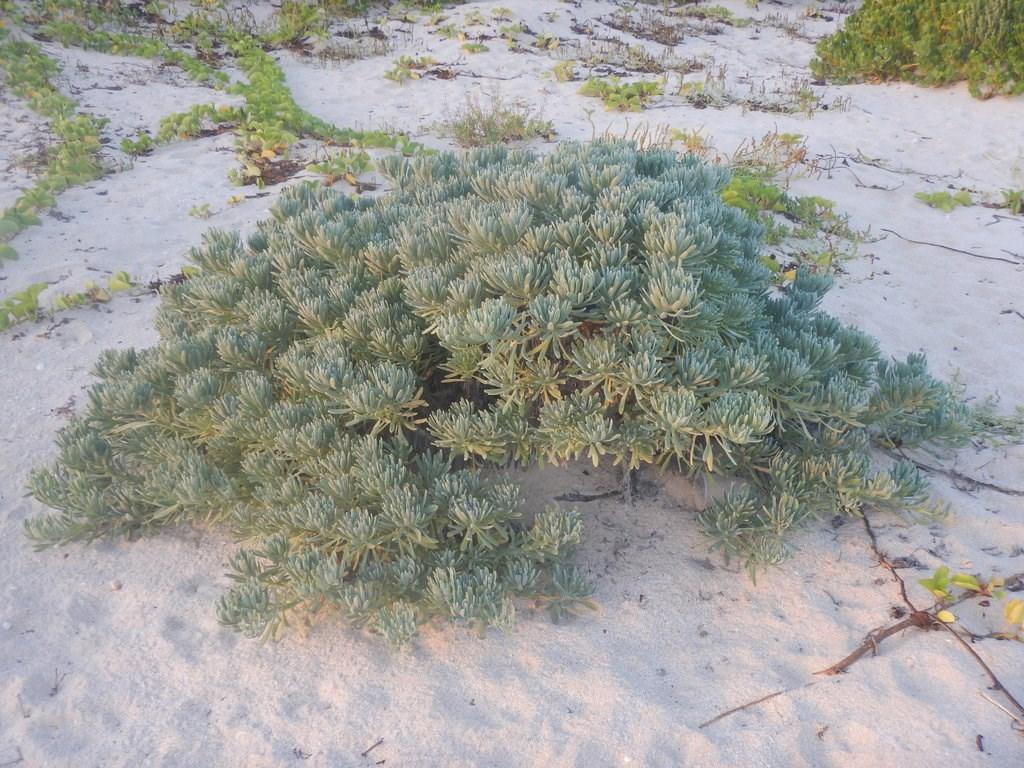 This versatile plant, reaching up to 3 feet in height, thrives in dunes, beaches, and coastal hammocks, serving as an adaptable groundcover or shrub. It can be easily shaped as a border in formal landscapes or left to grow naturally in clumps within more organic settings.