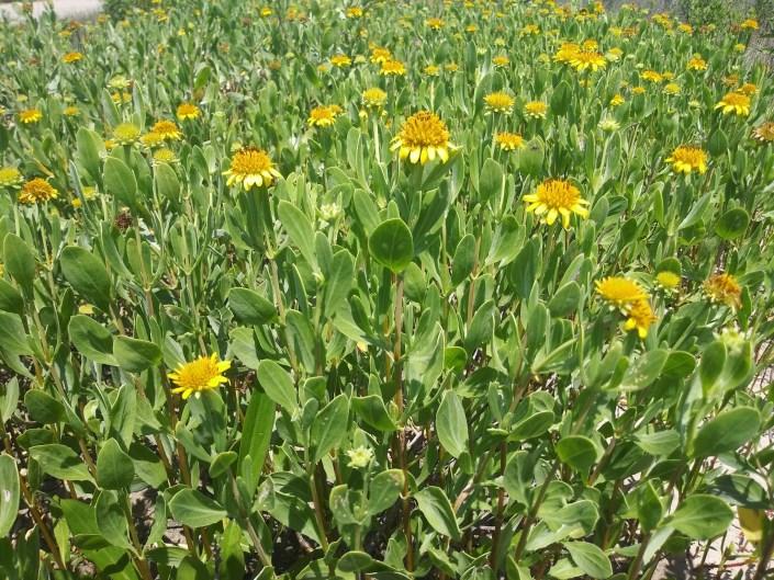 A spreading wildflower found on dunes that prefers full sun and does well in sandy soils. The plant grows to about 2 feet in height with a spread of 2 to 4 feet and will reseed. The bright yellow flowers and seeds attract wildlife. The species self