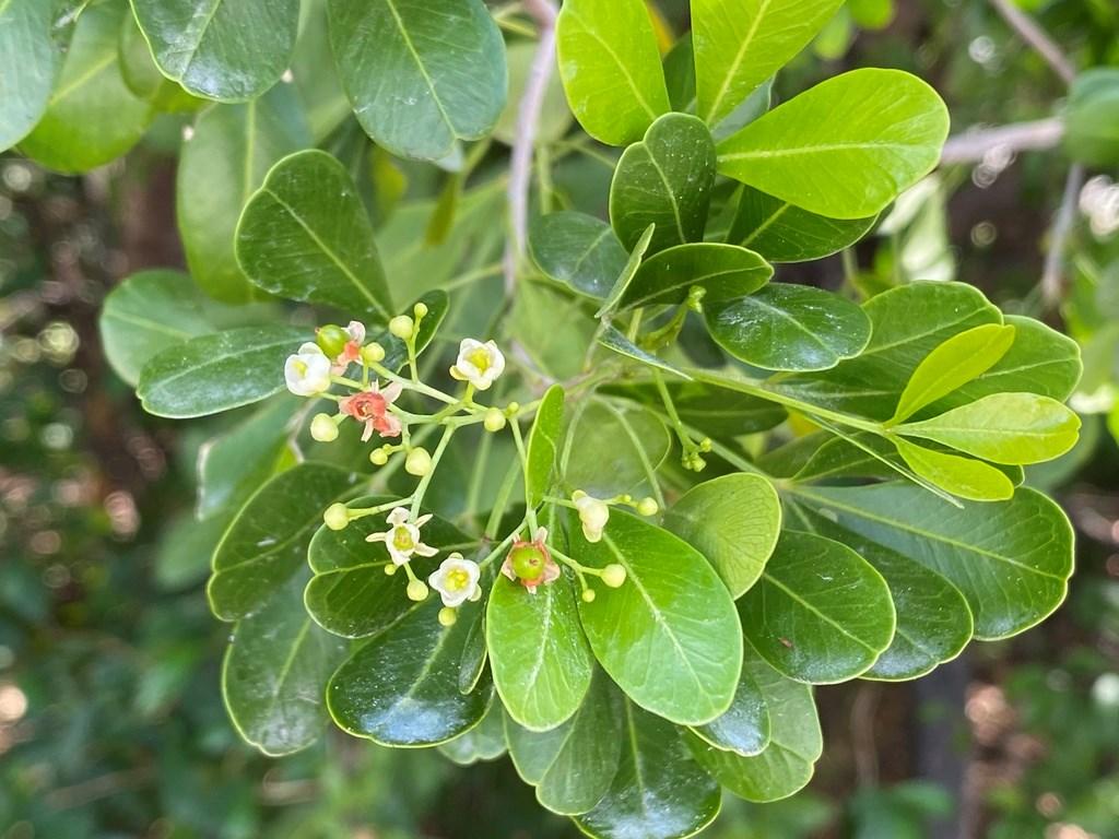 Inkwood is commonly seen in high elevation tropical hardwood hammocks and is frequently encountered in the Upper and Middle Keys. It is rare in the Lower Keys. This tree can reach heights of up to 50 feet and is distinguished by its glossy compound leaves, usually composed of four elongated leaflets. Its white flowers, adorned with yellow disks, form semi-showy clusters. This species exhibits a moderate to slow growth rate and thrives best in light shade to full sun. Species specialty: The fruits were utilized in ink production, while the dense, sturdy wood found application in boat construction, marine pilings, and crafting tool handles.