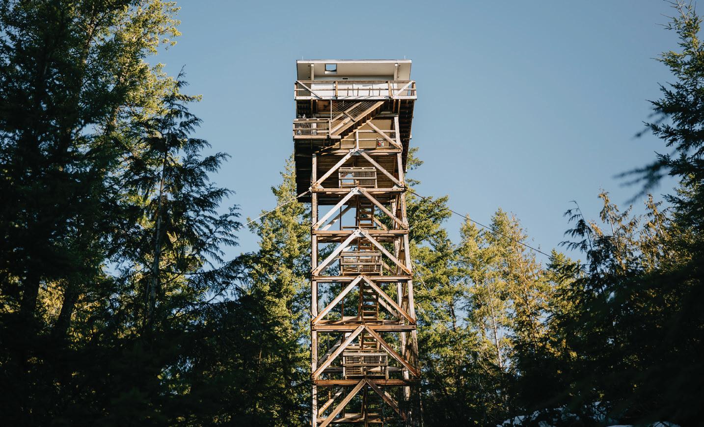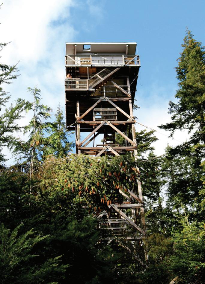 In the late 1990s, the Everett Mountaineers restored the 196 sq. ft. cabin perched at the top of the tower, replicating it based on its original plans. Today, bold adventurers who don’t mind hauling their overnight gear up the tower’s 84 steps can rent the lookout tower for an uncommon overnight camping experience. Overnight accommodations must be arranged with the U.S. Forest Service. (Learn more on page 21).