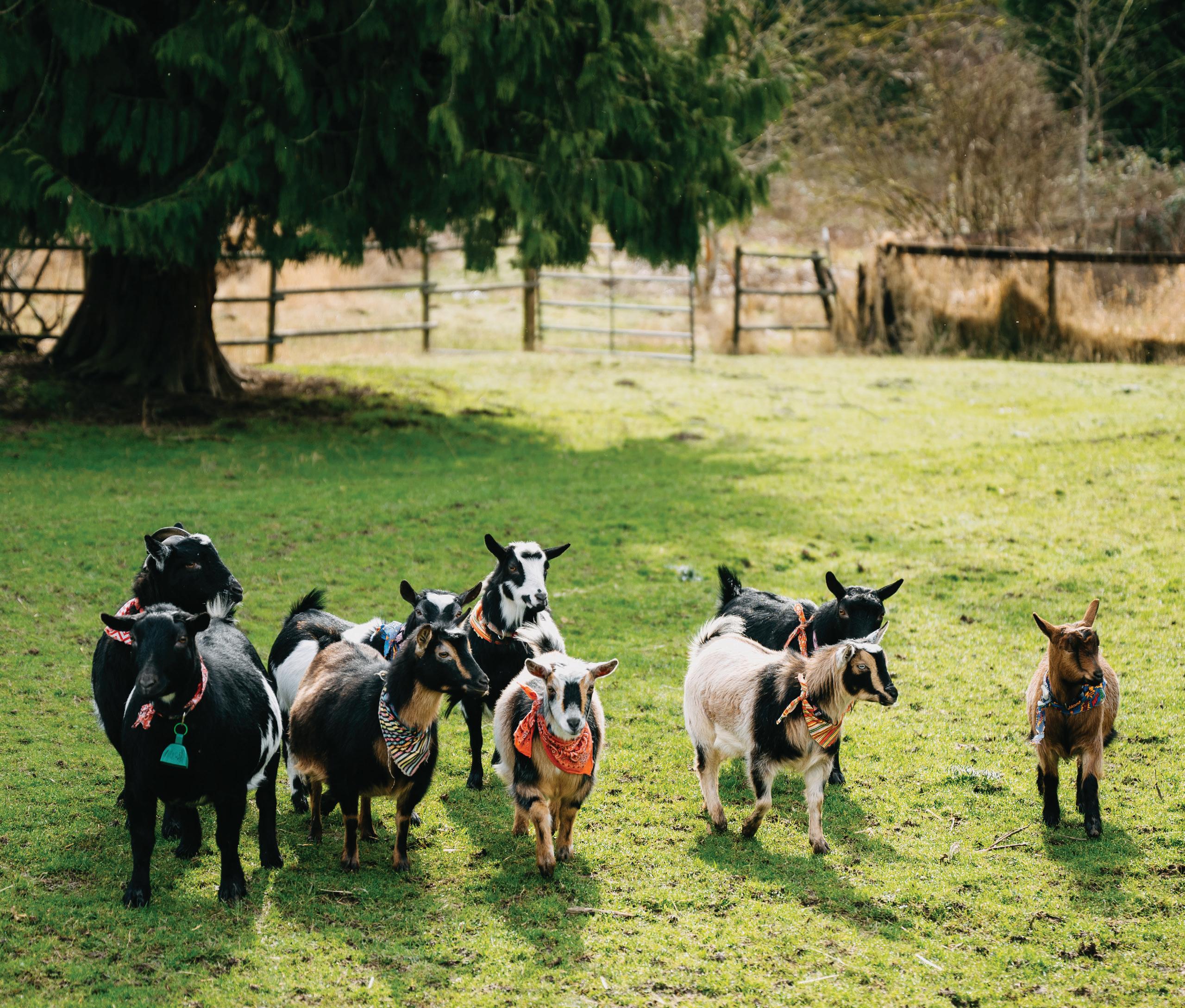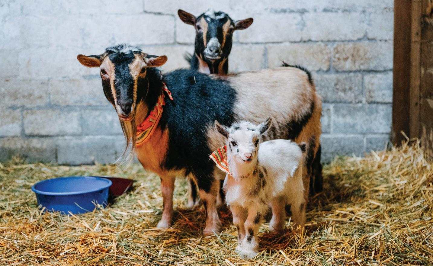 Michael and Caroline knew they were interested in Nigerian Dwarf goats, a petite breed of goat known for its rich milk, gentle personality and adorable appearance. Soon, they welcomed Nibbles and Domino, and after that came Vincent and Mona Lisa. Mona Lisa has become the matriarch of the herd and is a charming, sweetnatured goat who greets visitors with a reassuring calmness.