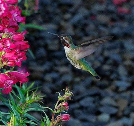 HUMMINGBIRDS ZOOM THROUGH THE AIR , hover and flit around the garden is so delightful, it’s no wonder so many of us want to see more visiting our gardens. The key to a lively hummingbird garden is selecting the appropriate flowers for them to feast upon, and then planting a lot of them. This allows them to fuel up more efficiently, without extra flying. Hummingbirds love bright, tubular flowers; their long tongues allow them to reach the nectar inside. Nectar isn’t the only thing that keeps hummingbirds happy — they also eat small insects.