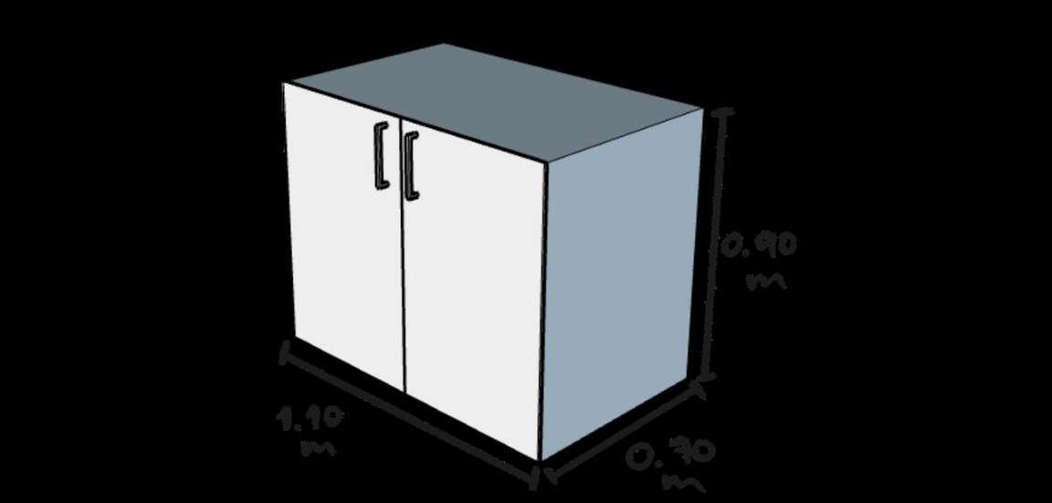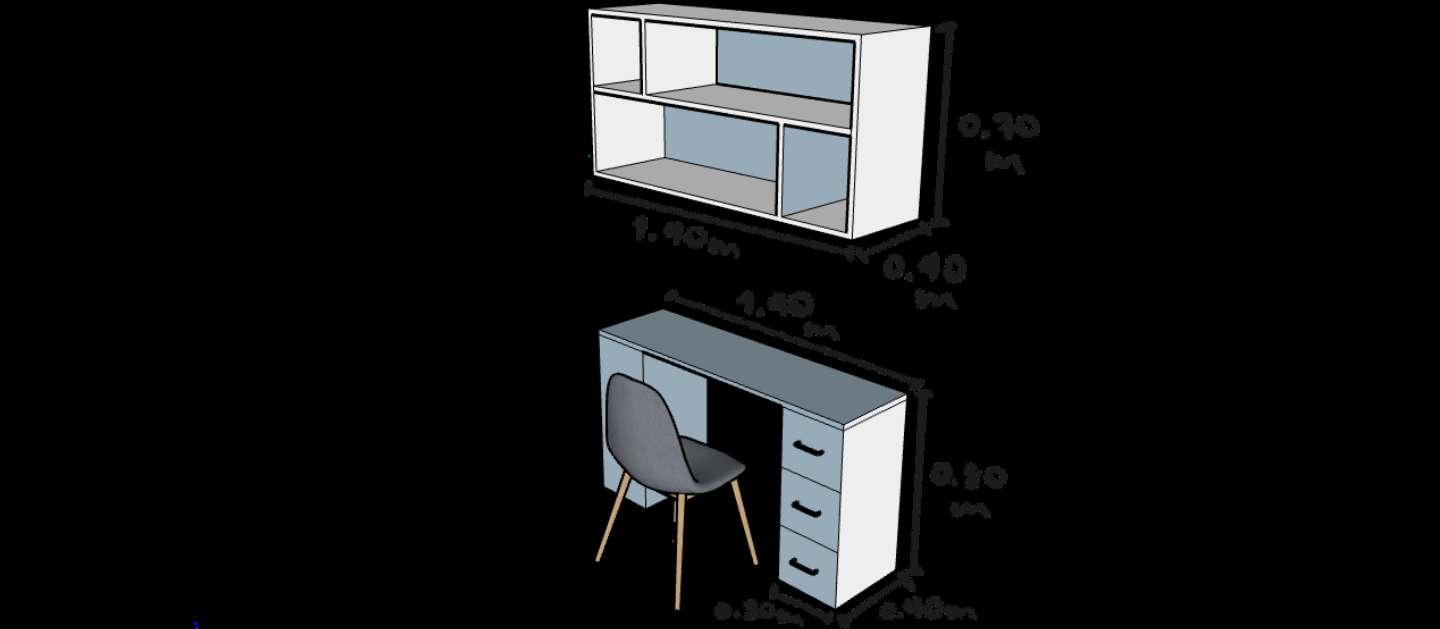 Alzados y diseño Perspectiva 2 Almacenamiento para blancos Escritorio / almacenamiento Estudio