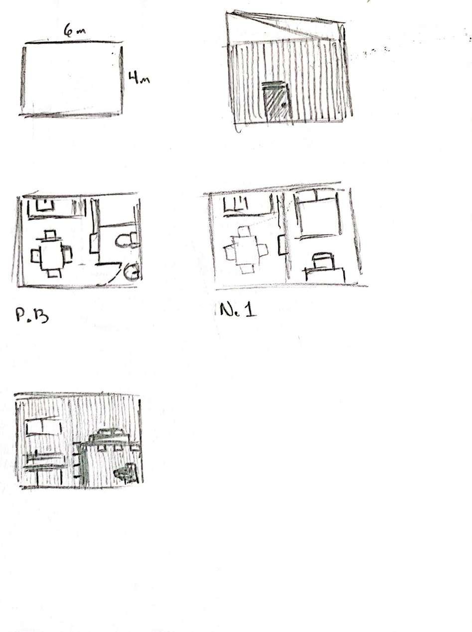 CAMBIO DE FORMAS MODIFICACIÓN DE DISTRIBUCIÓN 1.- colocar armario de blancos en vez de la ducha 2.- girar lavamanos para mayor comodidad al usar 3.- colocar la ducha después del inodoro 4.- jalar un muro en el que se apoya la cama para montar una cama abatible y que se esconda cuando no se use para liberar espacio