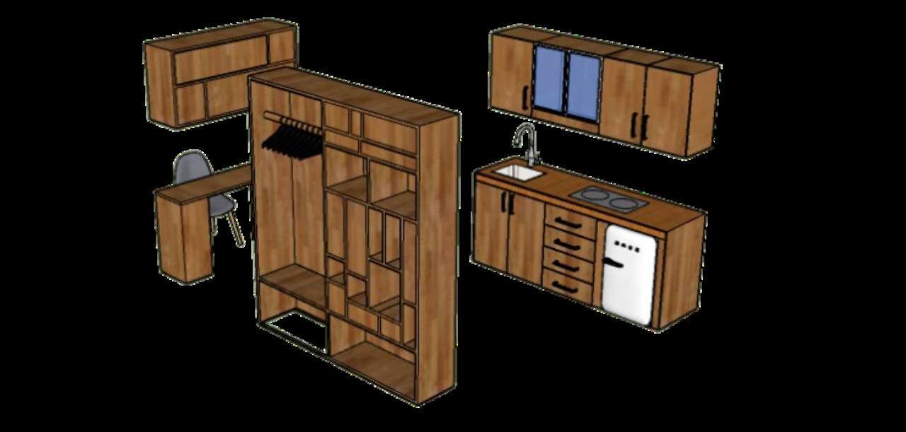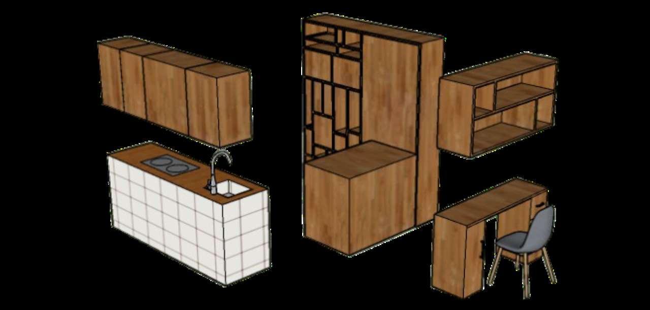 Alzados y diseño Perspectiva 1 Closet Cocina integral