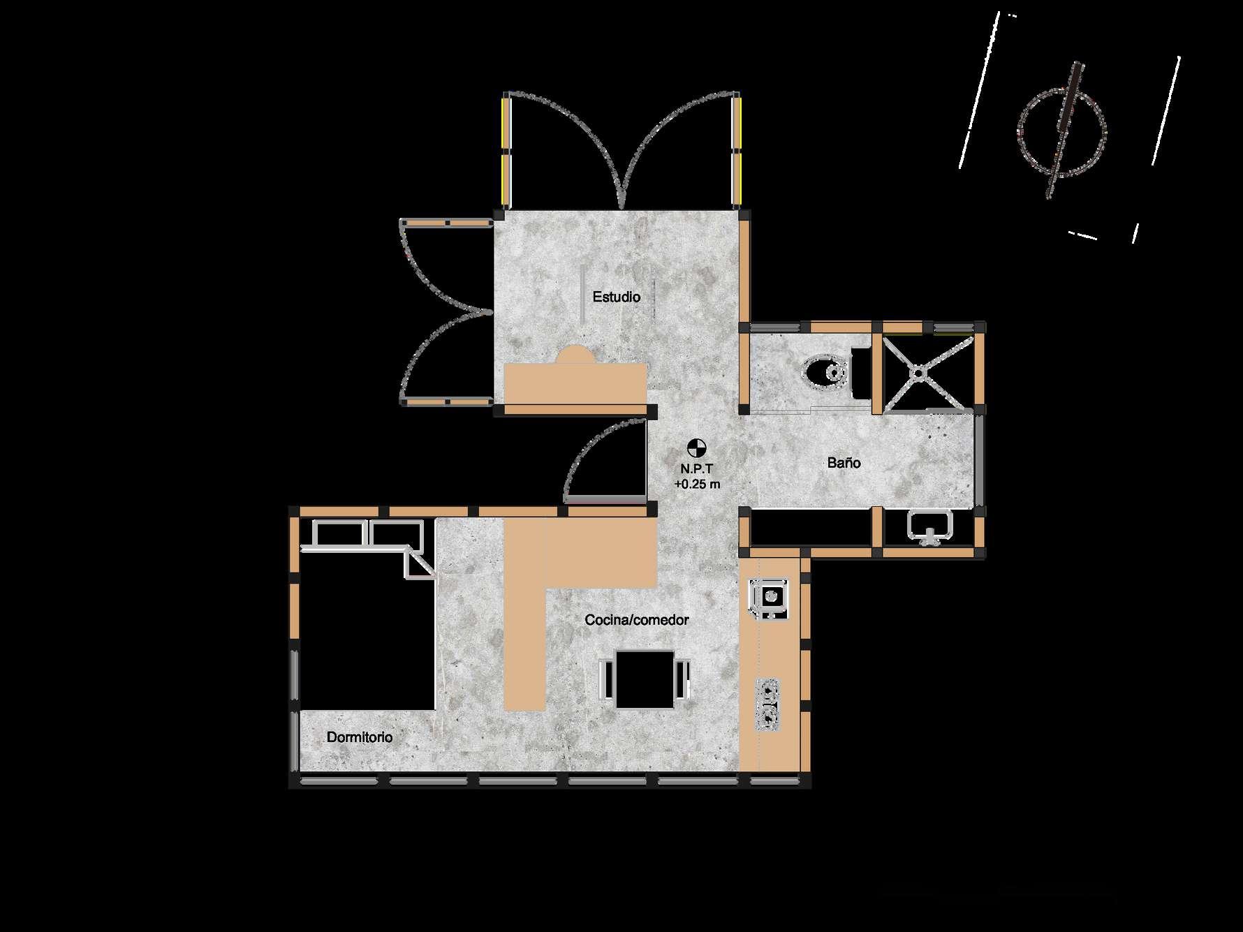 Área de trabajo (estudio) almacenamiento recámara baño Cocina/ sala / comedor