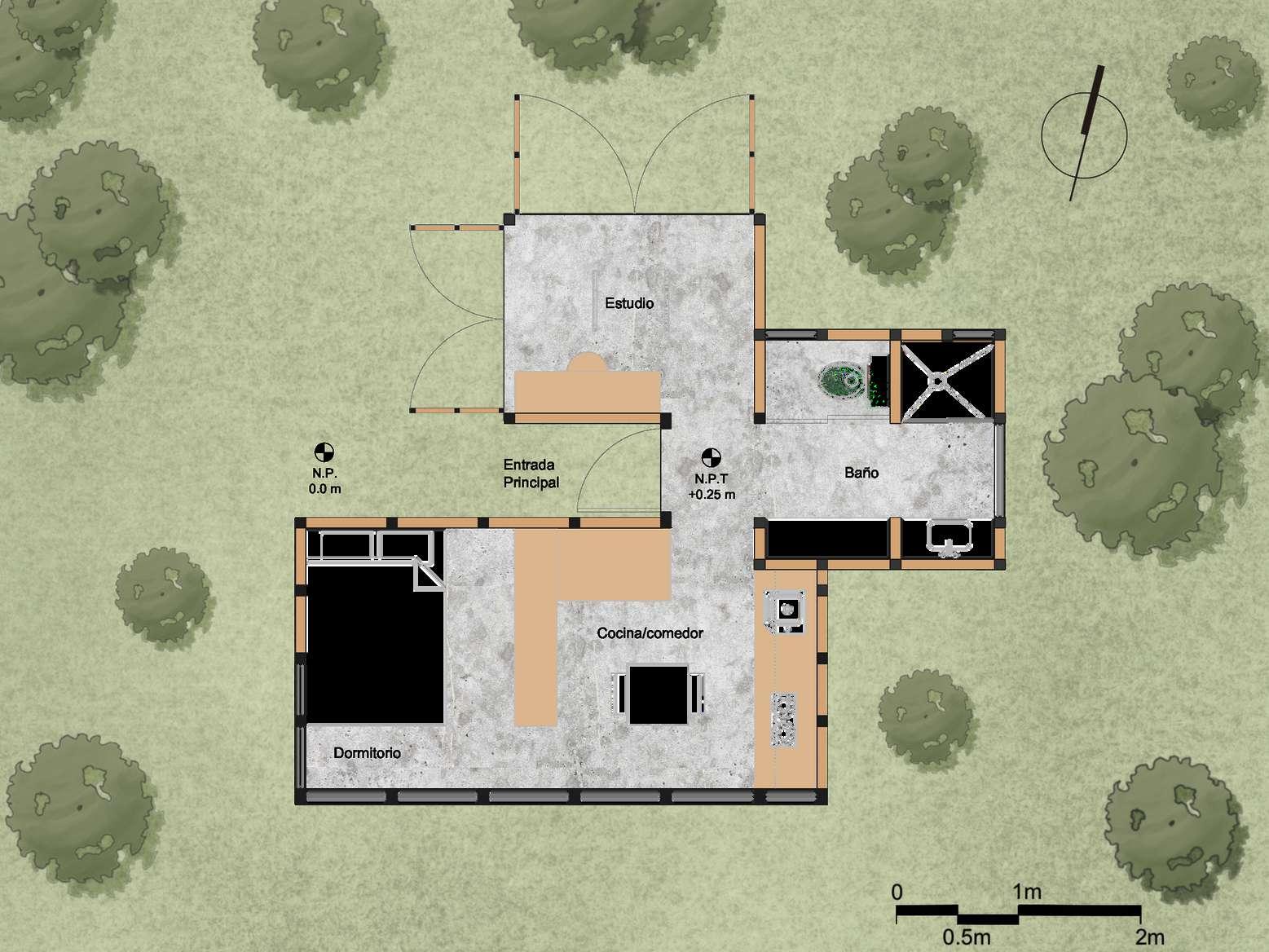 +0.25N.P.Tm Cocina/comedor Dormitorio Baño Estudio Entrada Principal0.0N.P.m A C 1 3 4 6 BDE 6.7 1.9 2.3 0.5 1.6 5.53 1.8 0.9 2.5 1 5 6 2 5.53 1 2.1 2.1 A D E 6.7 4.9 1.6 Y Y´ X X´ PlantaBaja Escala1:25 Nombredelproyecto CasaIldfly Recámara 6.125m2 Cocina/comedor 6.00m2 Baño 4.62m2 Estudio 4.14m2 Autores MonserratSophiaAnellJuárezGómezHernández SalvadorCuatetlChiquito Materia:Viviendaunifamiliar Fecha Escala 08/09/2022 1:25 Plano Clave PlantaBajaNanacamilpa,PA-04TlaxcalaCoordenadas:19.476022, -98.596785 N N.P.TB.A.P.BajadadeaguapluvialNiveldepisoterminado LíneaLíneadeejesdecorte