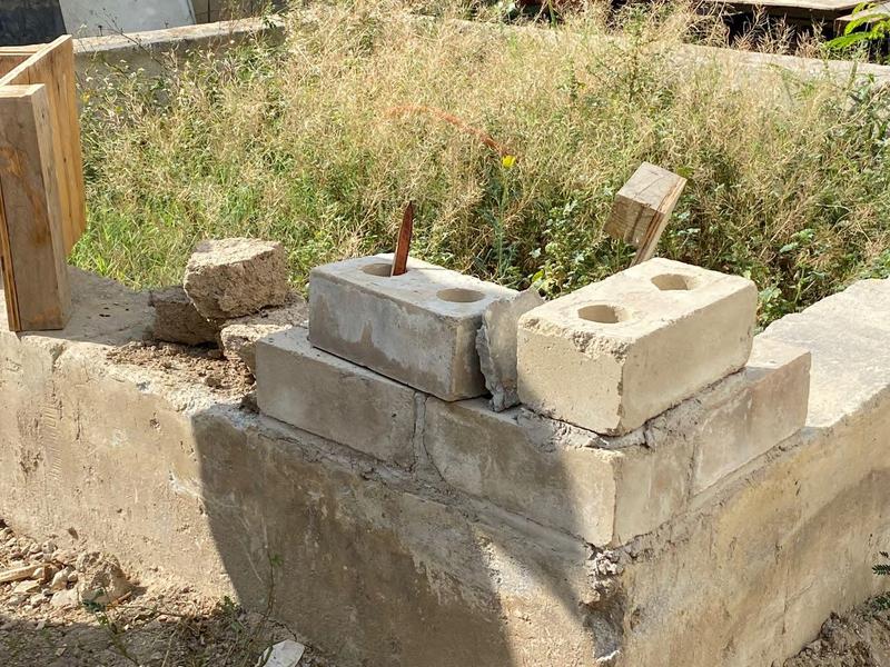Para el muro de carrizo, colocamos 3 carrizos horizontales entre 2 pilares de madera, que funcionarían estructuralmente como columnas; Entretejimos trozos de caña con cordón para crear una pared. Para el bajareque utilizamos trozos de caña partidos por la mitad, esto con el fin de utilizar la parte rugosa para pegar el adobe Esta técnica consiste en colocar trozos de carrizo con un recubrimiento de tierra, o en nuestro caso, adobe Asimismo, agregamos piedras en la parte inferior para simular una base y sostener el muro de caña