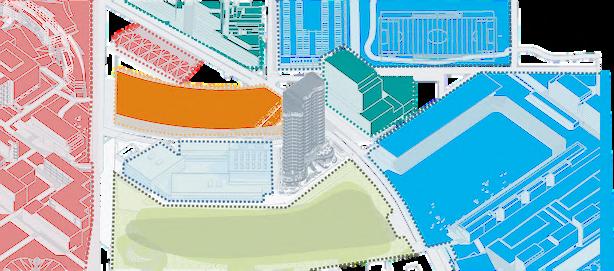 Dentro del plan maestro del Distrito Tec se contemplan las instalaciones existentes para uso académico y deportivo, y su aporte más reciente: el parque central Está previsto construir un edificio de uso mixto junto al Parque y en el mismo terreno