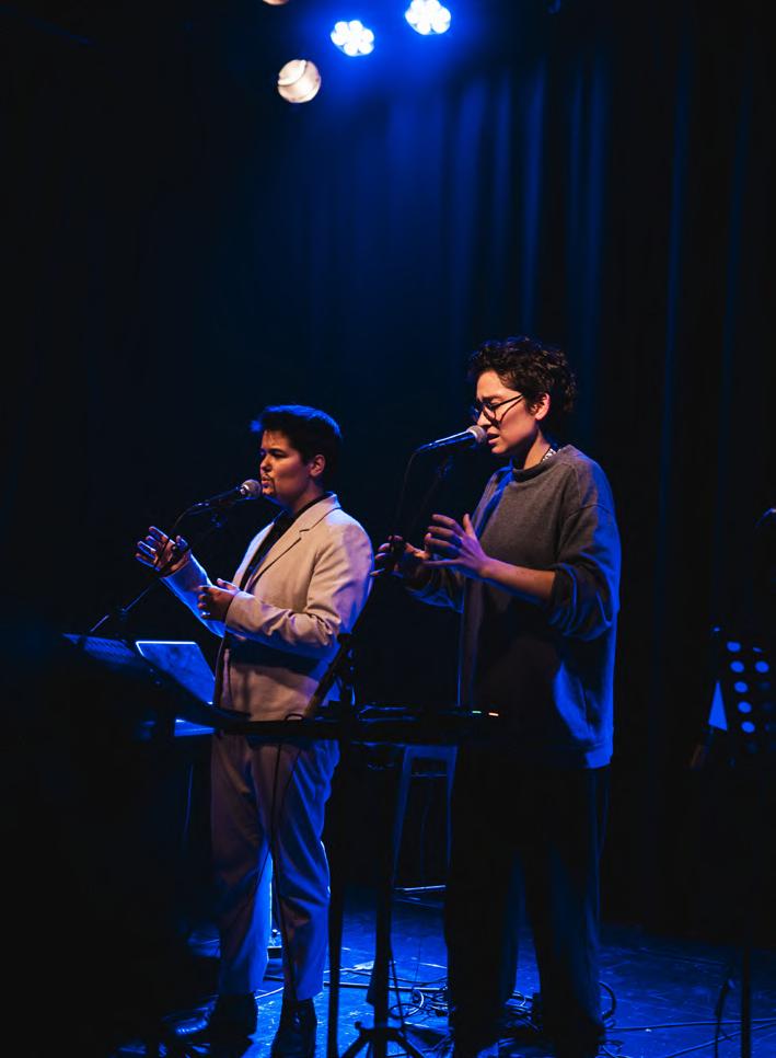 Sur scène, le duo nous invite à un voyage intense, fusionnant les dimensions sonores et visuelles avec un dispositif de projection rarement vue sur la scène des musiques amplifiées, augmenté d’interactions lumières contrôlées par le son.