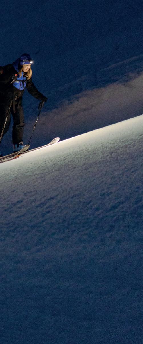 Seit nunmehr sechseinhalb Jahren lebt und arbeitet Svea aus Deutschland im Montafon. Ihre Leidenschaft für die Montafoner Berg welt verbindet die 31-Jährige mit ihrem Beruf als Leiterin der Abteilung Marketing & Events bei den Gargellner Bergbahnen. Im Winter begleitet Svea ab und an Skitoureninteres sierte nach Pistenschluss ins Skigebiet von Gargellen, um sie an die Faszination Touren ski heranzuführen.
