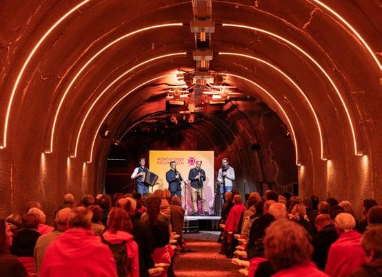 Durch seine besonderen Licht- und Soundinstallationen verwandelt sich der Stollen auf der Silvretta-Bielerhöhe in einen einzigartigen Schauplatz für Konzerte.