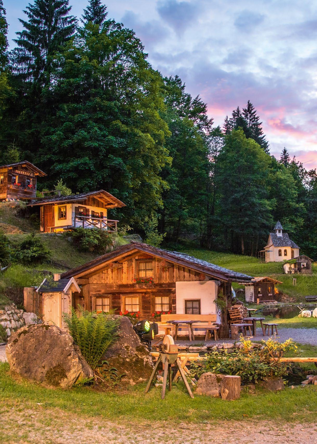 Zwischen Wildbach und Bergwiesen entstand im Garneratal ein Filmdorf wie aus einer anderen Zeit – mit verwitterten Holzhöfen, einer kleinen Kirche und einer Brücke über den Bach.