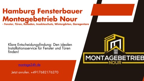 Mit über 25 Jahren Erfahrung ist Montagebetrieb Nour Ihr Partner in Hamburg für fachgerechten Ein- und Ausbau von Fenstern, Türen, Rollläden und Markisen. Wir sind Ihr PVC-Fensterlieferant und Fensterlieferant für qualitativ hochwertige Produkte, die Ihr Zuhause in eine energieeffiziente Wohnoase verwandeln. Unsere Aluminiumfenster sind sowohl elegant als auch energieeffizient. Unser Türenladen bietet eine vielfältige Auswahl, die Design und Funktion perfekt vereint. Unser Fensterinstallationsservice ist für Professionalität und Präzision bekannt. Mit freundlichem, sachkundigem Personal streben wir danach, eine zufriedene Gemeinschaft von Hausbesitzern zu schaffen. Vertrauen Sie auf Montagebetrieb Nour für Ihre Fenster- und Türenbedürfnisse