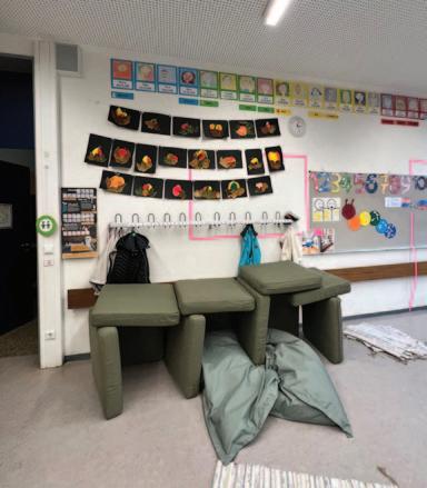 – Variable Einrichtungsgegenstände z. B. Bänke in unterschiedlichen Höhen, die sowohl als Bank als auch als Tisch und Bank verwendet und verstaut werden können - Rückzugsmöglichkeiten --) Ruheraum als Rückzugsort und Lernort gleichzeitig nutzbar - Garderobenzimmer - Pausenspiele - Fahrzeuge, etc.
