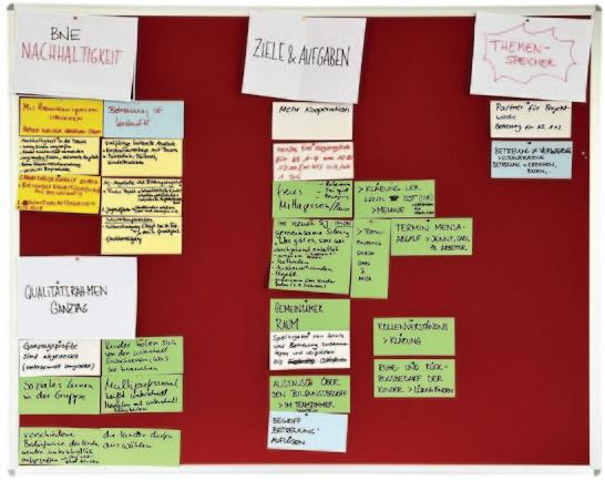 - Auf Grundlage stadtweiter Konzepte ein schulindividuelle Konzepte entwickeln. - Gemeinsame Haltungen entwickeln, sodass Lernen als ganzheitlicher Aspekt gesehen wird. Gelernt wird auch in der Nicht-Schulzeit. Das Verständnis und die Wertschätzung aller Beteiligten auf und für alle Seiten verbessern. Attraktive Arbeitszeiten für Erzieher*innen schaffen (auch am Vormittag). - Kleiteams an den Schulen schaffen. - Raum und Zeit für Kommunikation in den Teams schaffen. - Verantwortung übergeben und gleichzeitig Sicherheit bei der Arbeit mit Kindern verstärken. - Eigenverantwortliche Angebotsgestaltung und Optimierung der eigenen Arbeit, keine Verbesserung nach Top-Down sondern Trial&Error-Prinzip verfolgen.