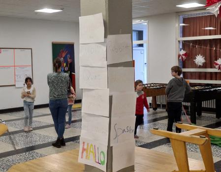 Der Hort nutzt vor allem den Pavillon und drei Klassenräume im Hauptgebäude bis 15:00 Uhr. Ca. 60 Kinder, also ca. ein Drittel der gesamten Schüler*innenschaft, nehmen das ergänzende Angebot in Anspruch und werden dabei von einem Team aus sechs pädagogischen Mitarbeiter*innen begleitet.