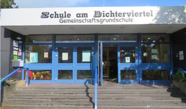 Die Grundschule am Dichterviertel ist eine etwa zweizügige Gemeinschaftsgrundschule (GGS), die jahrgangsübergreifend von der 1. bis zur 4. Klasse arbeitet. 23 pädagogische Lehrkräfte, 6 pädagogische Mitarbeiterinnen, eine Sonderpädagogin und 3 Schulsozialarbeiterinnen arbeiten mit rund 260 Kindern, von denen im Jahr 2023 120 im Ganztag angemeldet waren. In den kommenden Jahren wird eine sukzessive Steigerung bis zu einer 100% Auslastung angestrebt. Die kommunale Schulentwicklungsplanung geht dabei von zukünftig 7 Bezugsgruppen à 30 Kinder in der Offenen Ganztagsschule (OGS) aus. Seit September 2022 beherbergt die Schule auch ein Familiengrundschulzentrum unter der Trägerschaft des Diakonischen Werks. Neben einem offenen Beratungsangebot für Familien aus der Nachbarschaft organisiert das Zentrum regelmäßige Elterncafés und offene Freizeitangebote (Basteln, Trödel, Spieleabend) in den Räumen der Schule.