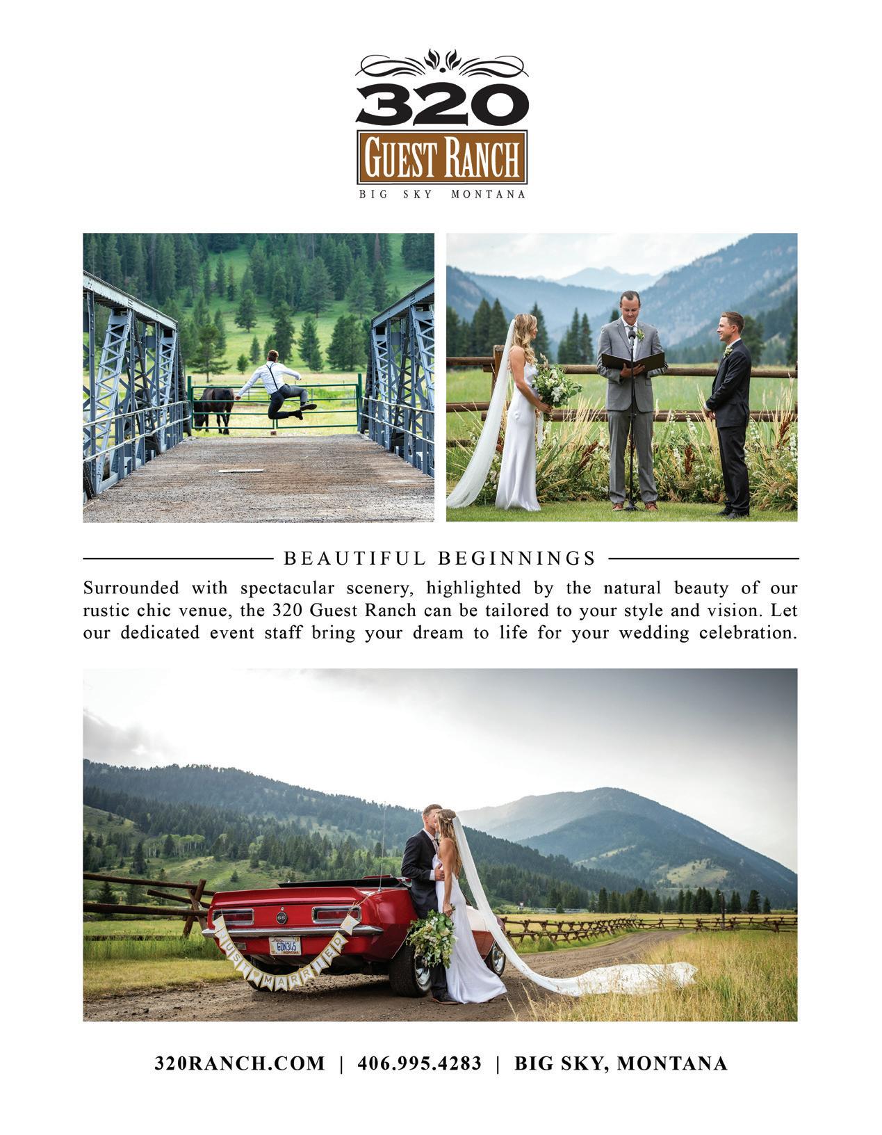 PHOTOGRAPHER | TYE IDLEMAN | WWW.TLIDLEMANPHOTO.COM HAIR & MAKEUP | HAILEY AND MARIAH WITH HONEY BEAUTY FLOWERS | MUM’S FLORAL WHITEFISH MODEL | HANNAH VERY SPECIAL THANKS TO OUR EVENTS MANAGER NATALIE IDLEMAN WEDDING INQUIRIES EMAIL: WEDDINGS@CLYDESDALEOUTPOST.COM A N E W B O U T I Q U E G U E S T R A N C H E X P E R I E N C E I N W H I T E F I S H W W W C L Y D E S D A L E O U T P O S T C O M