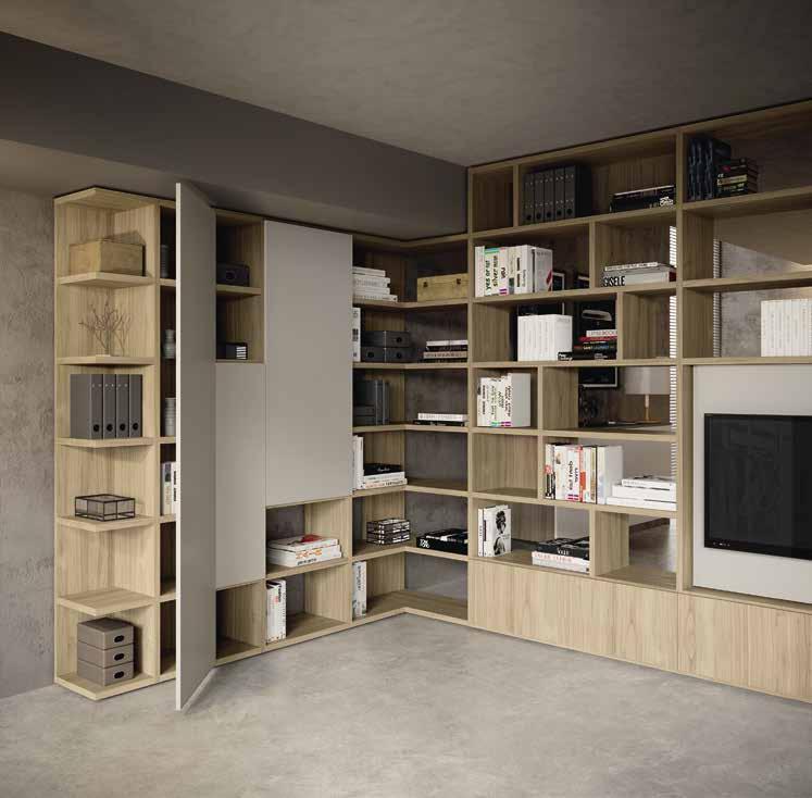 This furnishing item is much more than just a bookcase. Every element that is part of the range contributes towards building a unit that has been conceived and developed to perform a specific function or create a specific configuration. There’s a solution for every idea!