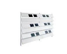 F_Système breveté de signalétique et communication composé d’une gamme complète de présentoirs et porte-dépliants en acier peint en époxy et PET transparent, disponibles en plusieurs formats. Pinces d’accrochage en technopolymère.