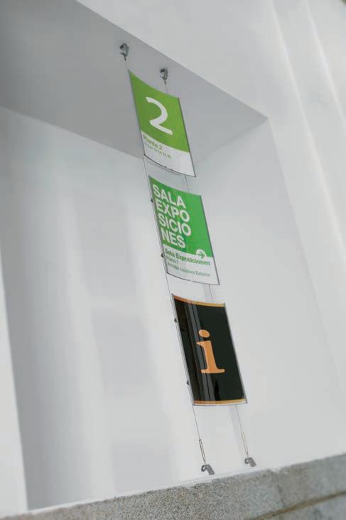 E_Los expositores se pueden aplicar en dos cables de acero con diferentes soluciones para sujetarlos a la pared o al techo.