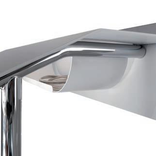 E_El atril se puede complementar con una bandeja para el alojamiento de cables con anillos pasacables de tecnopolimero aplicables a la estructura.