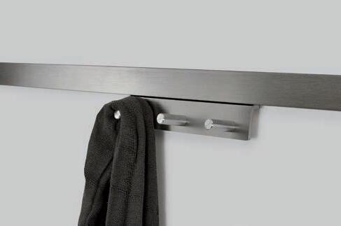 F_Set est formé par un colonnette en acier finition inox satiné avec un pied circulaire, disponible en acier finitions inox satiné ou peint en noir gaufré. Sur la partie supérieure du colonnette les accessoires sont accrochés et décrochés rapidement et facilement grâce à un système d’ancrage innovant.