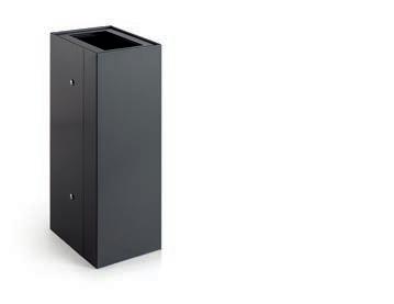 D_Set besteht aus einem matten Edelstahlständer mit kreisförmigem Bodenplatte, verfügbar in den Varianten Edelstahl matt oder lackiert in geprägtem Schwarz. Oben auf dem Standsäule werden die Accessoires dank eines innovativen Stecksystems schnell und einfach angebracht oder abgenommen.
