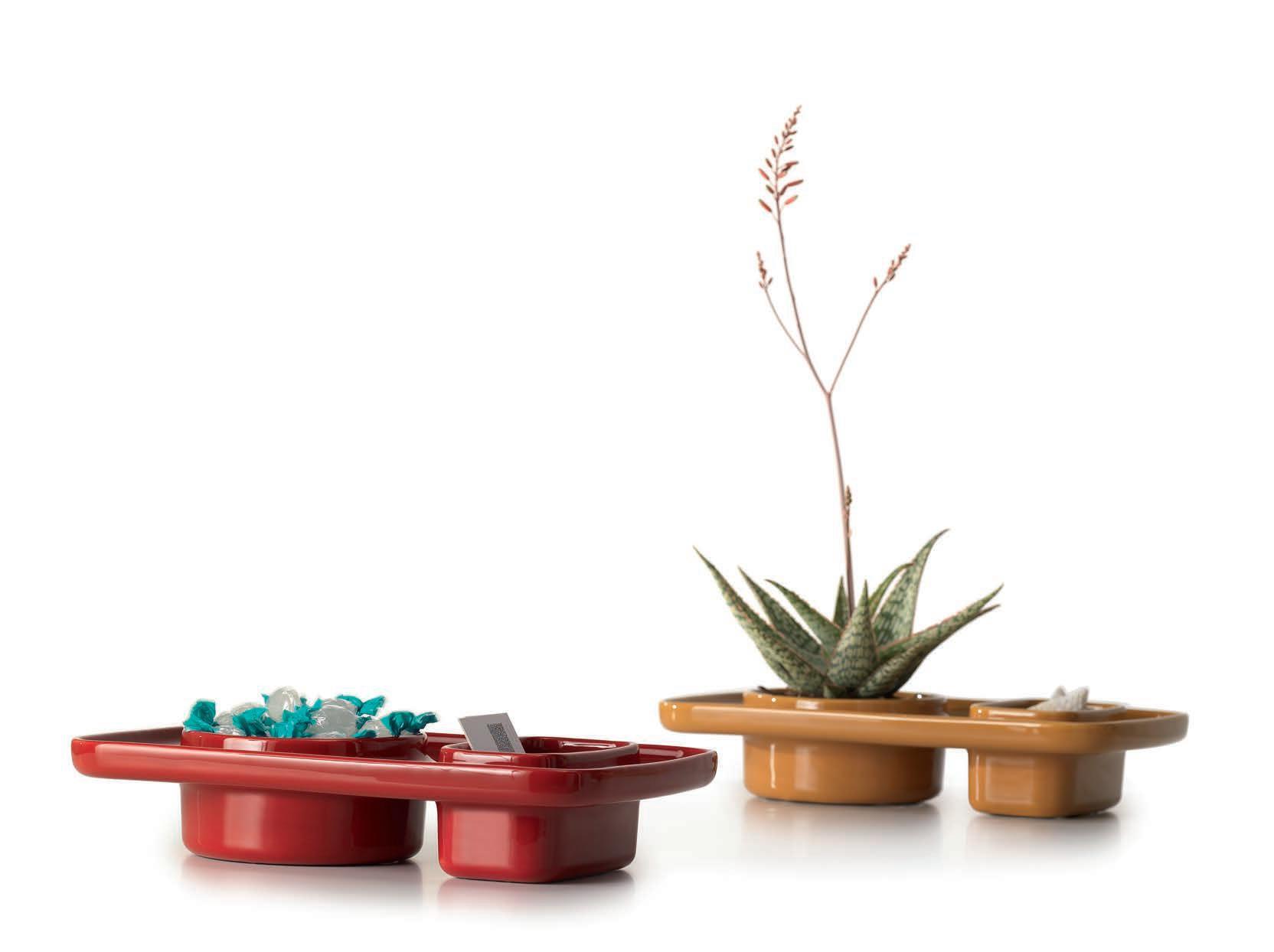 I_Questa collezione traspone alcuni segni tipici del linguaggio stilistico di Alessandro Mendini che diventano oggetti tridimensionali, sfruttabili come sedute, tavolini o semplici elementi di appoggio. Oggetti di natura ibrida che possono colorare un ambiente con un’estrema versatilità di utilizzo.